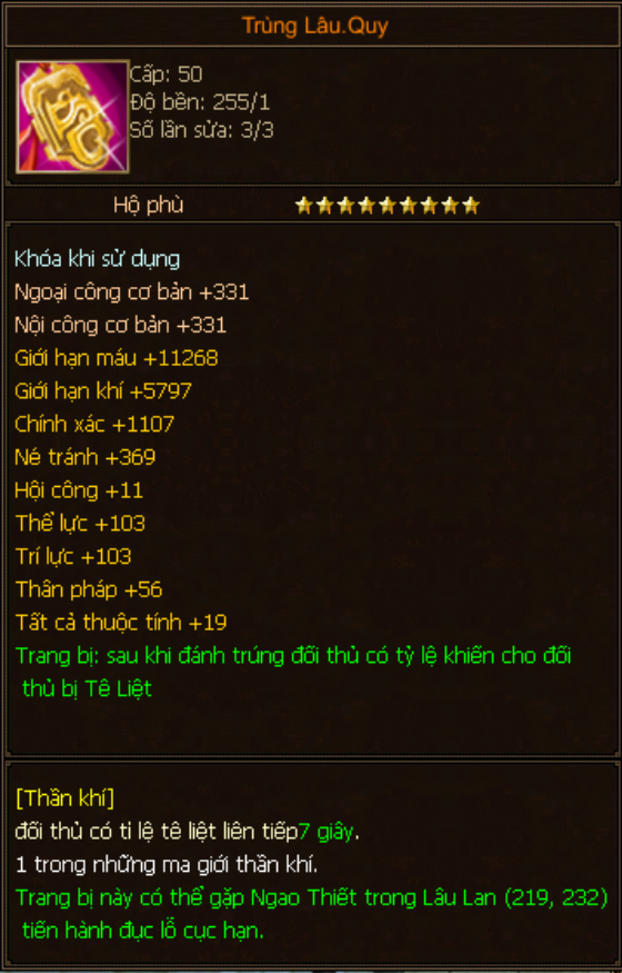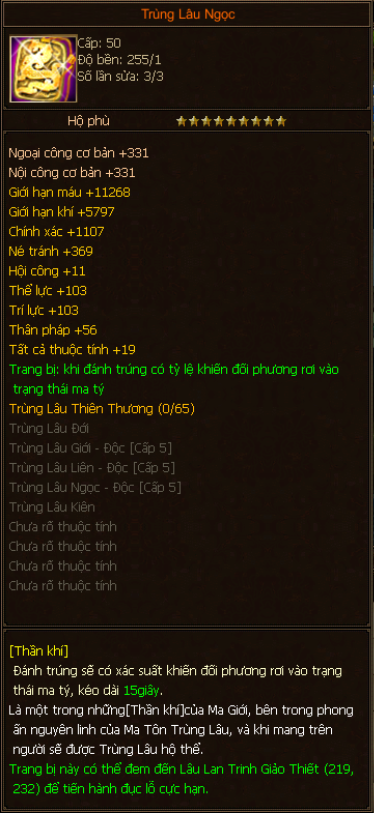 - ➢ Trùng Lâu Ngọc: chỉ có 1 chiếc duy nhất thuộc về người sở hữu đầu tiên tại máy chủ Băng Thiên.
